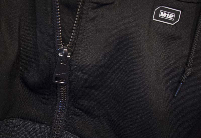 The Milwaukee heated technology uses the same carbon fiber heating elements in the hoodie that give you three levels of heating to vital core body areas in the chest and upper back. You can get up to 8 hours of run-time on an M12 RedLithium 2.0 battery in the lowest setting—a 33% increase over the first-generation heated jacket technology. In our testing we got over 2 hours and 45 minutes of run-time in High using the same 2.0 Ah M12 battery. Another cool aspect of this jacket is that the M12 battery holder features a handy 2.1A USB port that can simultaneously charge your electronic devices while you wear and use the jacket. That’s sufficient enough to fast charge most smart phones, Kindles, and tablets. There are even reinforced slots for running “stealth cables”. There’s one above the left inside zippered pocket of the outer RipStop jacket that’s perfect for feeding your headphones from your securely-stored smart phone. Another lives just above the battery/power supply so you can feed a USB charging cable to your phone as well. With this setup, you can both listen to music and charge your phone while you’re working (or playing).