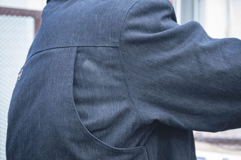 Greater still is the bi-swing back, whose design is readily apparent just below the yoke. Itโ€™s meant to give the wearer a large range of mobility and comfort. On a chilly morning, I put on the Jack-Shirt and got to work.