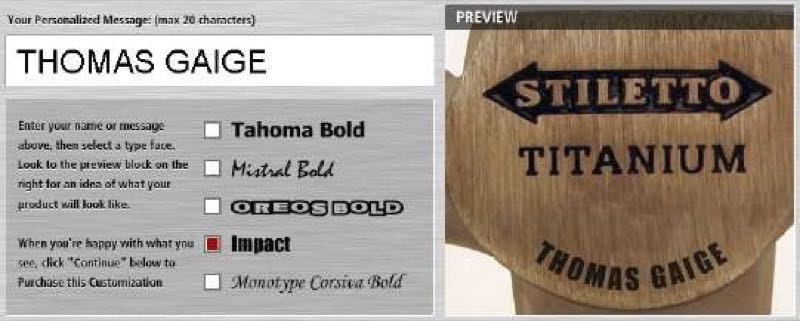 As an added benefit, Stiletto offers a personalization service which is a $15.00 additional fee. It is a pretty easy process; you pick out your hammer, then pick out a font, what you want it to say, and chose from several locations on the tool where you want it. On the screen, they give you an approximate idea of what the final product will look like.