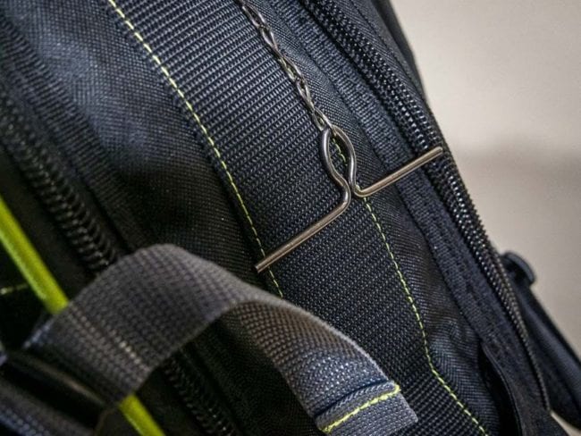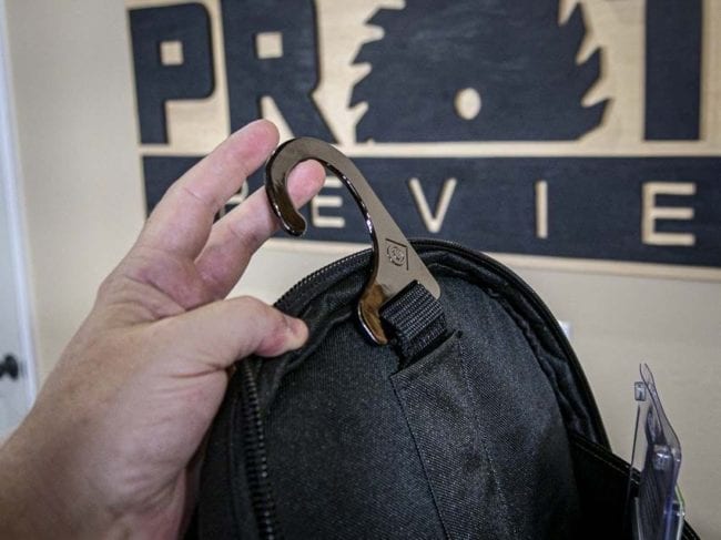 - Hang hook: inside the rear compartment, there’s a stout steel hang hook hiding in the upper pocket