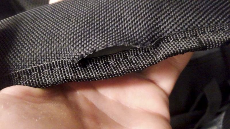 One issue we ran into is a few missed stitches on a front strap. The thread didnโ€™t pop, it just looks like the material folded and the machine missed an inch or so. Aside from that slight stitch issue, itโ€™s in good shape after a couple months of use.
