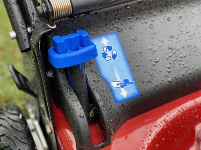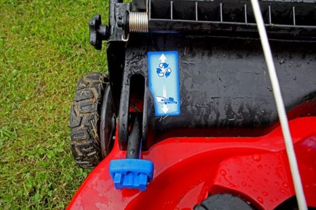 I like mulching with my mower because I donโ€™t want to deal with emptying the bag. Some people, however, prefer only to mow with a bagโ€”particularly those with lots of leaves. Toro includes a quick change lever that easily goes back and forth between recycle mode (which mulches the grass using Toroโ€™s Atomic blade lift system) or bagging mode. Even better, you can make the switch while the mower runs.