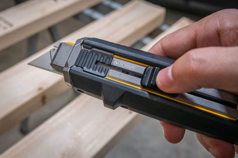 You can pick up the Toughbuilt Retractable Scraper Utility Knife from Loweโs. They sell it both in-store and online for $17.98. It comes with 5 blades, and itโs time to pick up more, you can get a 30-pack of the proprietary razor blades for less than $10.