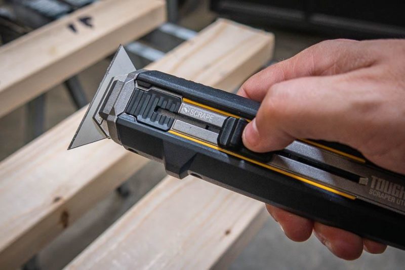 The Toughbuilt Retractable Scraper Utility Knife is the first tool weโve seen with this sort of design, and itโs incredibly helpful. Weโre often in need of a scraper, but that generally involves looking for a separate tool. By having these two tools tied together, and with the additional utility of the built-in pry bar, we can cover a wide variety of applications without spending any time trying to hunt down a dedicated scraper.