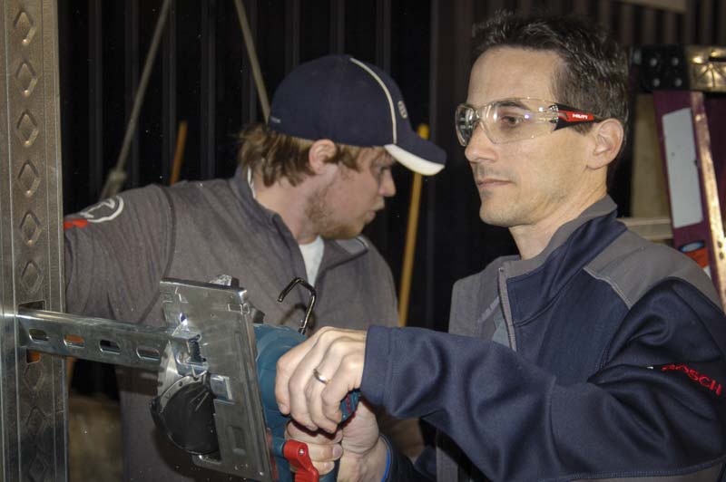 The new Bosch CSM 180 18V Metal Circular Saw features the smallest design in the industry. At only 5.8 pounds with the 4.0 amp hour battery, it’s ideal for vertical and overhead metal cutting applications. The CSM 180 has been designed with an ergonomic housing around the powerful motor. A small, but very helpful, addition is the rafter hook, which Bosch tells us is currently an industry exclusive on this class of saw.