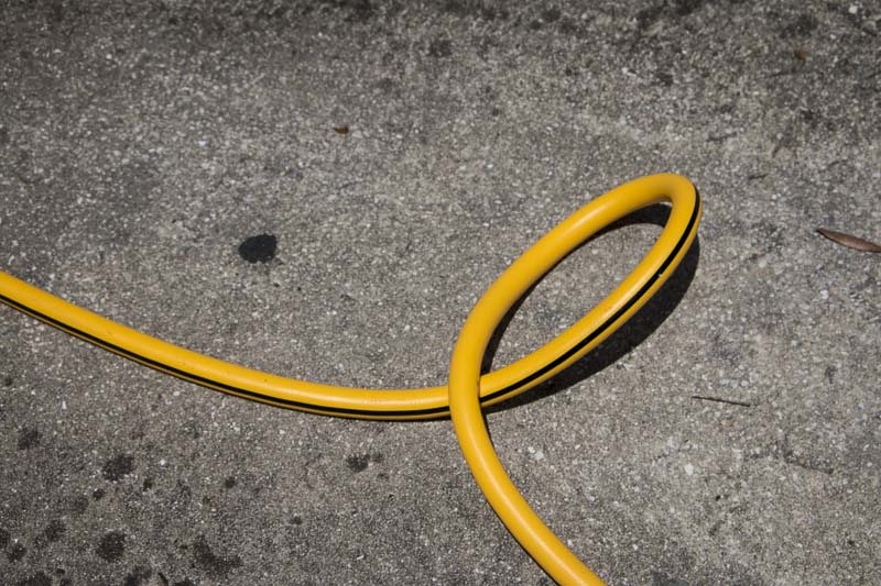 I liked the lightweight nature ofย this hose. Compared to my standard โgreenโ pro-level 50โฒ hose it sheds about 1.5 pounds. Thatโs noticeable when youโre hauling itโand particularly when youโre dragging it to various areasย on the jobsite. Another thing I noticed is that, while theย Stanley Fatmax Pro Grade Water Hose is fully capable of kinking when its empty, the kinks are much harder to find (or create) when thereโs water filling the tube. Check out what happened to the Fatmax hoseย when we turned on the water: