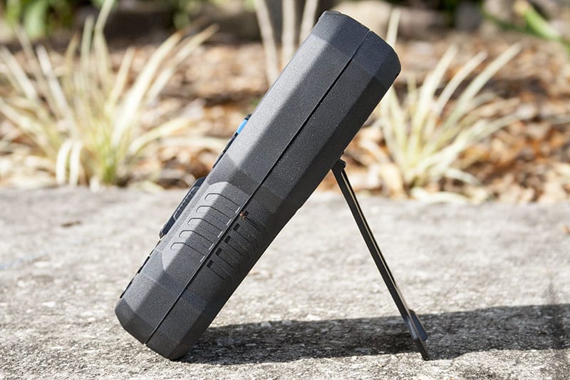 Handy features include a kickstand, an LED work light, and an optional lead holder that screws into the back which also contains a magnet for sticking the meter to the inside of a service panel. Thatโ€™s really a nice touch.