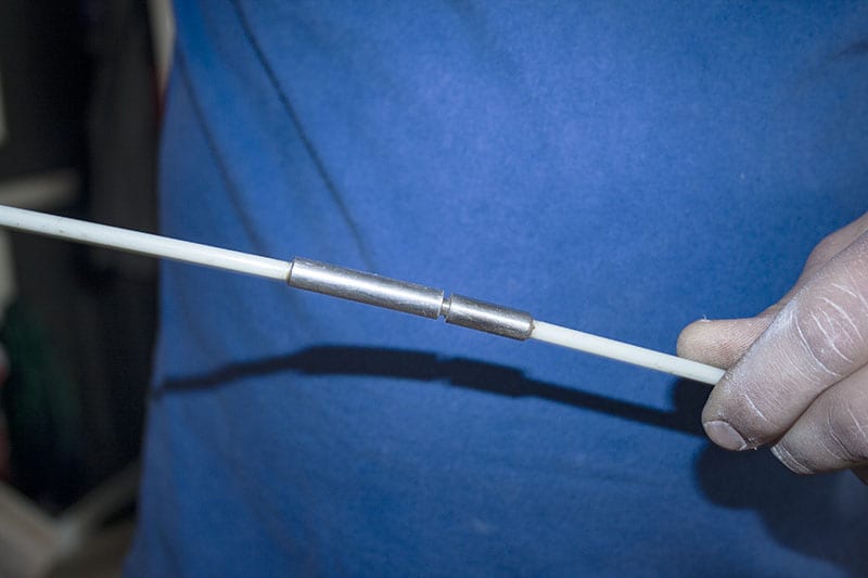 I used the ball chain to pull cat5 down a wall without making a hole any bigger than necessary. Itโs no big surprise that the smaller traces you make, the less you have to patch or clean up. I mentioned a clever way to use the ball chain earlier. In a tight, awkward space, attach the ball chain to one set of rods and then approach it from the opposite side with the whisk and twist it. The ball chain will temporarily attach to the whisk and youโll be able to pull it through in a pinch.