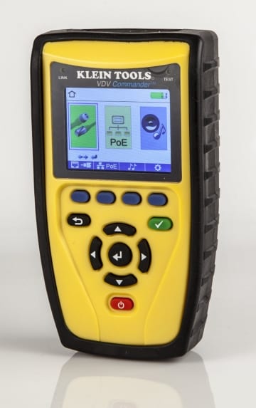 Klein Project Manager Chris Niklas tells us that โOur customers were looking for a comprehensive product that included all the necessary tests and functions to complete a high-end voice/data/video installation, without the big price tag of a โcertifierโ. The Klein Tools Commander Series has complete cable testing capabilities, accurate cable measurements, PoE detection, cable location and ID, tone generator, Link Light, active network testing, and even room for hundreds of test reports.โ