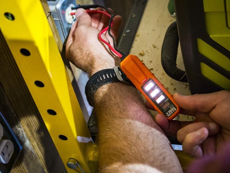 You donโt need some crazy-expensive or complex multimeter to test for voltage at the basic level. For $8.99, the ET45 Klein Tools Voltage Tester confirms the presence without a lot of extra complication.ย Itโs not as convenient as a non-contact voltage tester, but itโs less expensive and tells you what voltage range youโre working in.