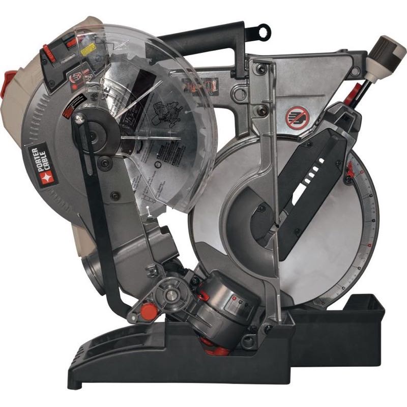 This new miter saw features a 15-amp ball bearing motor. Capable of some compound cuts, the Porter-Cable saw has a maximum bevel (left bevel only) of 47ยฐ, and a maximum miter of 47ยฐ to the left and 55ยฐ to the right. It also has a maximum cutting capacity of up to 2โณ x 6โณ or 4โณ x 4โณ lumber atย 0ยฐ. ย At 45ยฐ, This saw is capable of a maximum 2โณ x 4โณ.