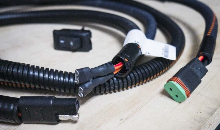 We need to tap into the electrical or battery wiring, and there are a couple of areas to do this. The one we found was near the left side of the mower, in the engine compartment. Just follow the wires, theyโ€™ll lead you there. Plug the LED light wiring harness into the newly found 12V-ignition source. There should only be power to the lights when the key is in the โ€œOnโ€ position. Finally, plug the two waterproof plugs (with green ends) into each LED light.
