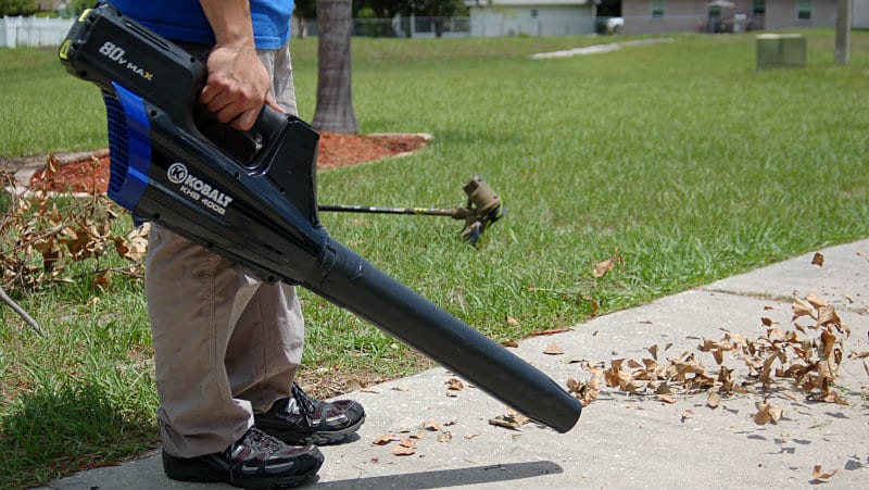 At a maximum of 500 CFM (Cubic Feet per Minute) and 125 MPH, the Kobalt 80V Blower is more than enough to clear debris and lawn clippings off my driveway. While Florida isnโ€™t known for its broad leaf trees, our friends to the North can expect to be able to clear their lawn of leaves pretty effectively. 125 MPH speed isnโ€™t up there with the gas leaf blowers, but 500 CFM volume exceeds many. This trade off means that once you get the debris moving, youโ€™ll be able to keep it moving very well as you push it to your desired location. Youโ€™ll just need to be closer than youโ€™re used to with a gas blower.