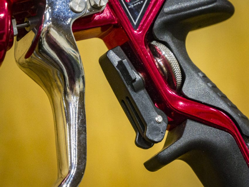 The Titan Rx-Apex Aluminum Airless Spray Gun sits atop the company’s aluminum spray gun line, above even the Rx-Pro from a couple years ago. As Richard mentioned, after spray quality, a spray gun’s desirability rests squarely on comfort and control. After all, you’ve got to hold this thing in the air, sometimes above your head, for hours on end. And so the aluminum frame is designed to minimize weight.