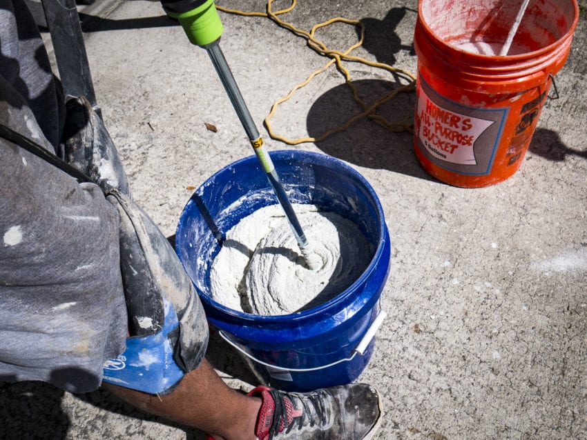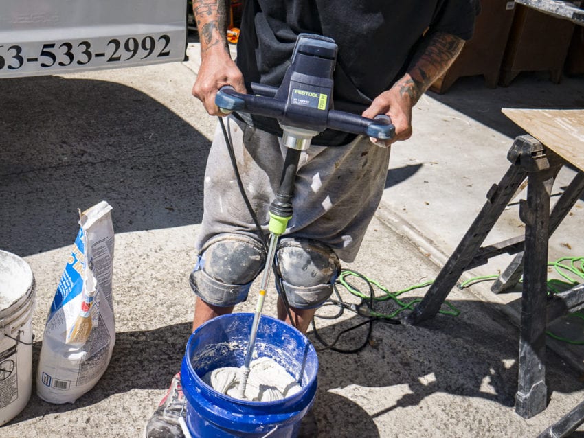 It might also be worth mentioning that the new Festool mixer has a soft-start feature. When I pull the trigger, the mixer wonโt immediately launch into ludicrous speed, which keeps all my material in the bucket rather than spraying it everywhere. Itโs a particularly attractive feature if you do any mixing inside a finished space.