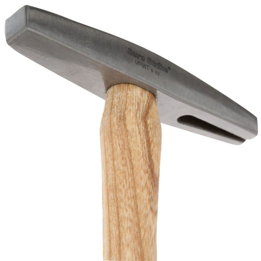 The Tack Hammer is a lightweight hammer that has a magnetized face on one side. It helps you start tacks and small nails without having to hold onto them. Then you flip the hammer to the opposite striking face to drive the tack home. You typically use this type of hammer when attaching upholstery fabric to furniture frames. The heads on these hammers vary, but might be as small as 5 ounces.