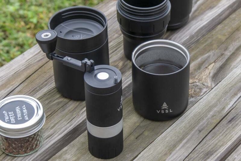 For grinding beans, VSSL has you covered as well. The more compact companion to the VSSL Nest is the G25 grinder. Made from aircraft-grade aluminum, itโs 6.2 inches tall, 2 inches in diameter, and costs you 12.7 in carry weight. In fact, it fits inside the Nest or VSSLโs AeroPress Go.