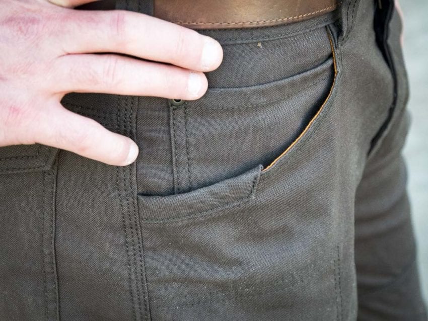 When it comes to your pockets, there are several talkingย points. You get two deep front pockets to work with. Both sides feature reinforcement from extra material where you normally clip your pen or knife. Thatโs really nice to have since itโs the place that I start to wear out most of my pants quickest. On the right, thereโs also an upper pocket. Normally, itโs not good for holding much, but this one is wider and deeper so you might actually get some use out of it.