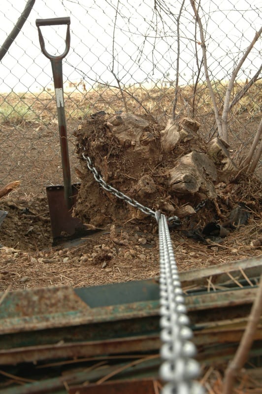 Most recently I used the Warn PullzAll for yanking out some shrub stumps that were quite intent on staying put. Because of its hoist brake, the PullzAll holds its full-rated load firmly in place once you let go of the trigger. I was able to do this task in steps by alternately pulling until the winch stalled, cutting the newly exposed roots with a shovel and repeating until I prevailed.