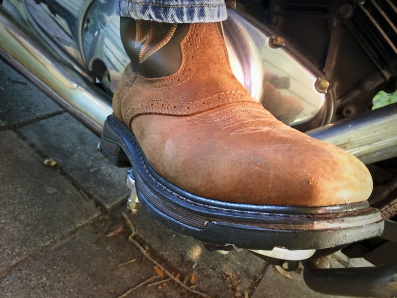 My foot is a tad wide and this boot felt great, particularly in the area of the heel. The steel toe of the Wolverine Javelina High Plains cowboy boots offers the protection you need without being obnoxious, and it left enough room to get it underneath the shifter of my cruiserโ€”something I have trouble with when wearing some booths with a high upper. The sizing runs about right on these and I found that just a normal cotton sock was enough to provide the comfort I needed, though a boot sock wouldnโ€™t be problematic either and would provide a more snug fit.