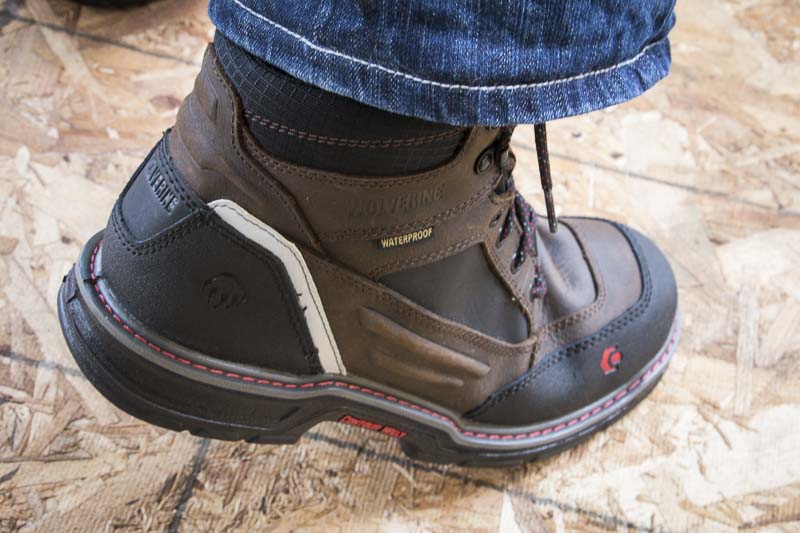 Composite toe boots are popular since they’re lighter. The Wolverine Overman waterproof EH boots are very lightweight for the protection offered in this 6-inch boot. While some job sites are shunning steel toes, composite is a solid option if you want to protect your toes from drop damage. The boots did seem to deliver decent flexibility—something that’s all too seldom found in work boots (durability will be accompanied by a rigid sole). Additionally, Shawn found that whatever Wolverine built into the MultiShox compression pads did a good job of keeping the boots comfortable—even after weeks of use.