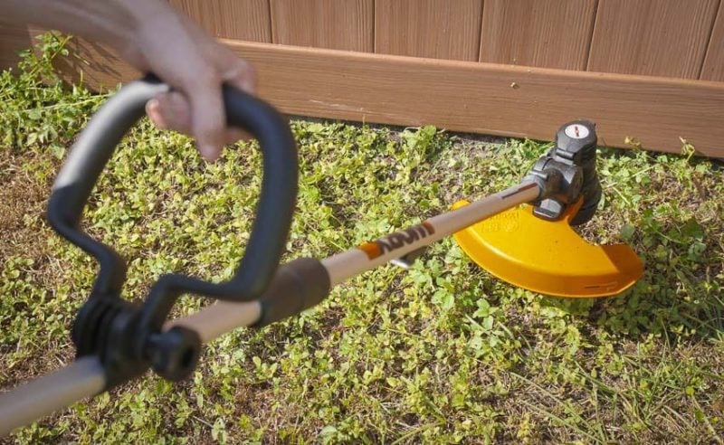 The Worx 56V String Trimmerโ€™s ability to be used as an edger is thanks to an excellent design. Most string trimmers force the user to balance the unit in a slightly awkward position while holding up at just the right height to edge. That just not a great solution and never leaves a good clean edge. Wheeled designs are the go-to for professionals and Worx adds that to their String Trimmer. This adds significant speed to the process.