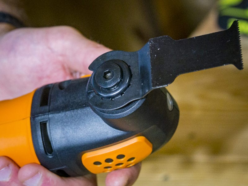 Before you can make yourย first cut, you need to install a blade. Some manufacturers have come up with some pretty sophisticated tool-free systems for swapping out and mounting new blades and accessories. Unfortunately, Worx doesnโt fall into this camp. Youโll need a hex wrench to loosen the bolt enough to change out your blades.