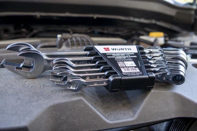 The dual-ratcheting wrenches we reviewed before have an innovative ratcheting open end. Wurth sticks with a classic 15ยฐ offset open end on these, though.