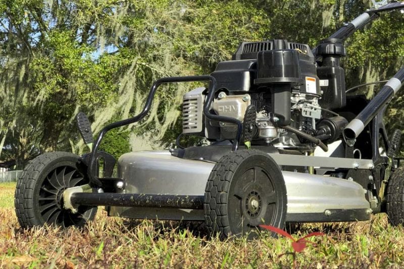 The Ybravo Commercial 25โณ lawn mower feels rock solid while youโre mowing. A solid axle on the front improves that feel considerably. Compared to other gas mowers weโve used, thereโs very little flex in the system.
